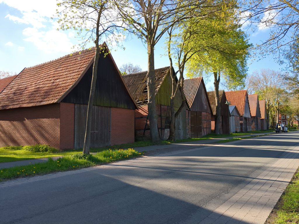 Ich unterquere die Bahnstrecke nach kurzer Zeit durch einen Tunnel und gelange in die Ortschaft Heimsen. Der Ort ist bekannt als eines der Dörfer an der Mittelweser, aus denen Männer im ausgehenden 19. und zu Beginn des 20. Jahrhunderts in größerer Zahl auf Fischdampfern auf der Nordsee anheuerten. Aus diesem Grund gibt es hier auch ein Heringsfänger-Museum, an dem ich kurz darauf vorbeikomme. Das Museum ist allerdings heute geschlossen.