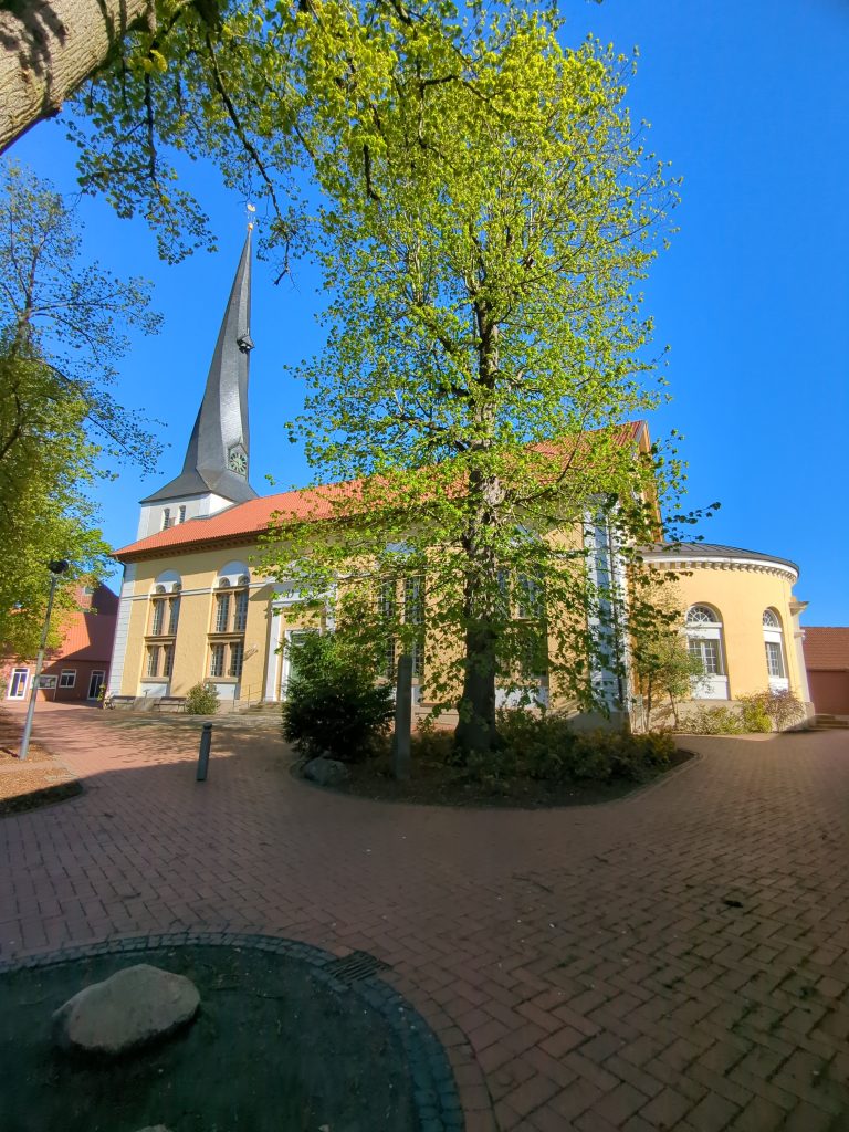 Ich esse zwei Müsliriegel und koche mir Tee zum Frühstück. Dann richte ich mein Gepäck und als ich gerade um kurz nach 08:00 Uhr aufbrechen will, erscheint Frau Witte, um sich nach meinem Befinden zu erkundigen. Wir gehen dann zusammen zur Kirche und sie schließt mir die Kirche auf, damit ich auch hier noch einen Blick in das Innere werfen kann.