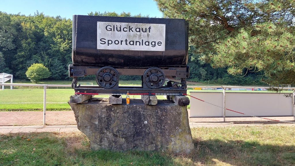 Der Name der Sportanlage deutet auch hier auf die geschichtliche Vergangenheit des Ortes hin. Bergbau spielte hier eine bedeutende Rolle, allerdings wurde nicht – wie im BĂŒckeberg oder im Deister – Steinkohle abgebaut, sondern eisenerzhaltiges Gestein. Dieses Gestein wird heute allerdings nicht mehr in Hochöfen verhĂŒttet, sondern lediglich zerkleinert und als Beimischung fĂŒr verschiedene Baustoffe verwendet.