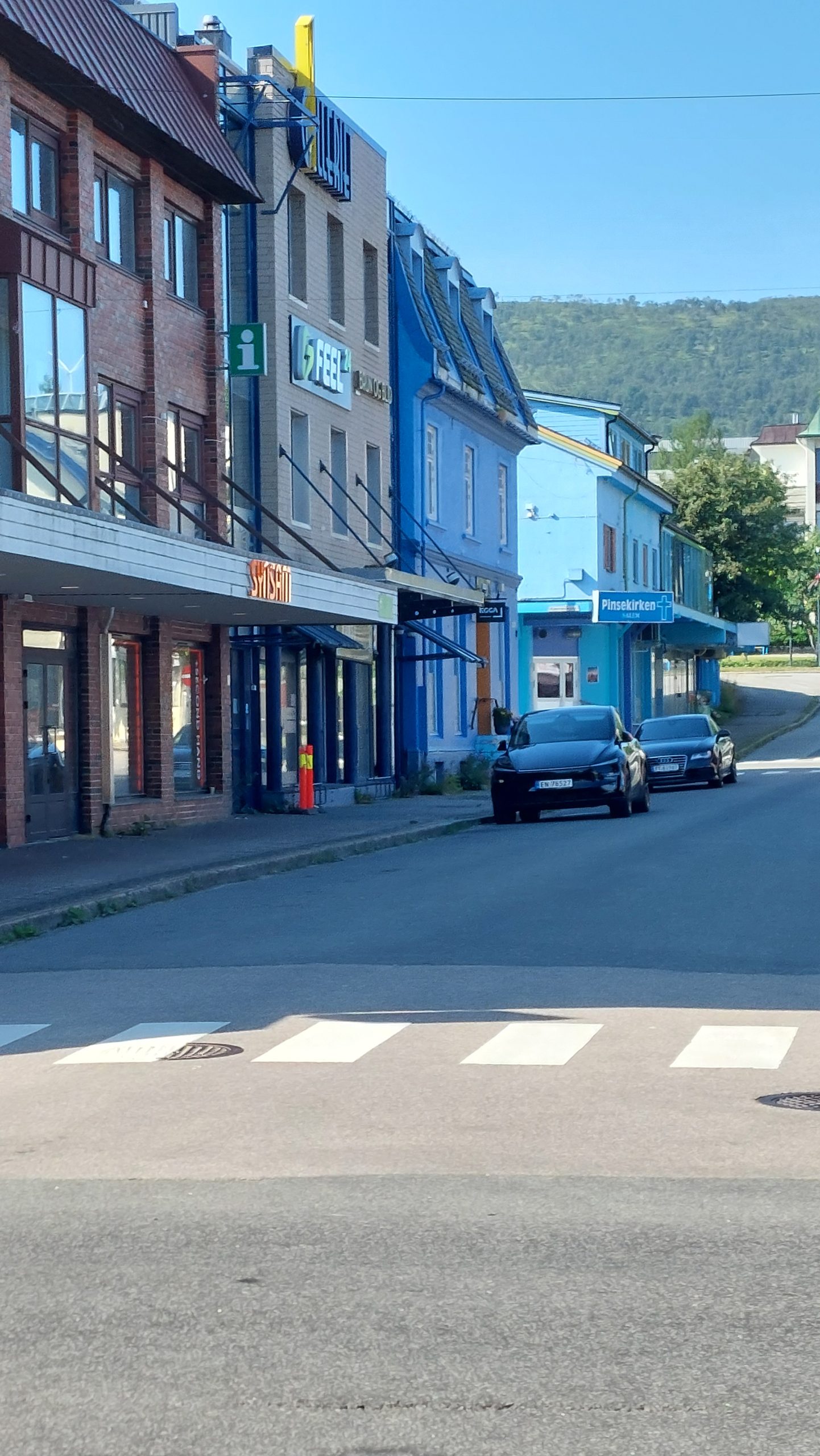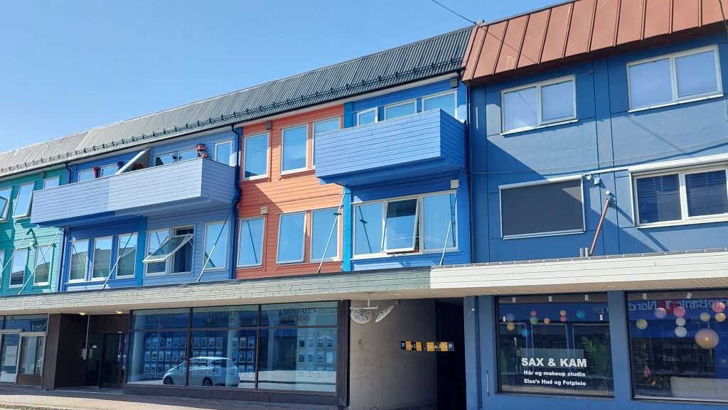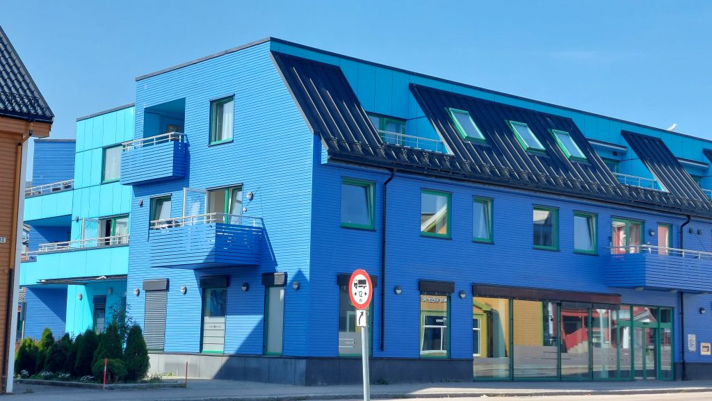 Als nĂ€chsten Hafen laufen wir Sortland auf der Insel LangĂžya an. Vor einigen Jahren wurde hier ein Architektenwettbewerb ausgeschrieben, um die Stadt attraktiver zu machen. Der Vorschlag, der das Rennen machte war ziemlich einfach: Man sollte einfach mehr Farbe in die Stadt bringen, weil die GebĂ€ude ĂŒberwiegend eintönig grau waren. Die Wahl fiel schlieĂlich auf die Farbe blau, und so wird Sortland heute auch die blaue Stadt genannt.