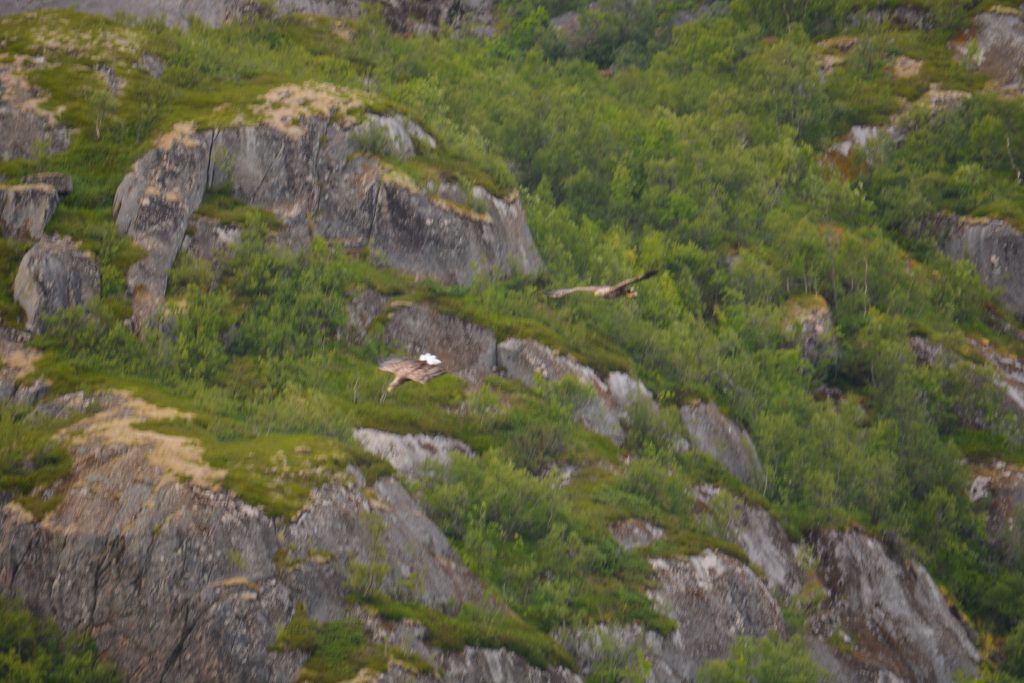 Da heute eine Attraktion die nĂ€chste jagt und man kaum noch weiĂ, wohin man schauen soll, folgt als nĂ€chstes der Tengelfjord. Hier gibt es eine besonders groĂe Population von Seeadlern. Diese Vögel wurden in Norwegen – wie fast ĂŒberall auf der Welt – noch vor nicht allzu langer Zeit noch bejagt. Erst als der Bestand auf nur noch ca. 20 Brutpaare zurĂŒckgegangen war, wurden die Vögel unter Schutz gestellt. Heute gibt es wieder ĂŒber 200 Brutpaare in diesem Bereich.