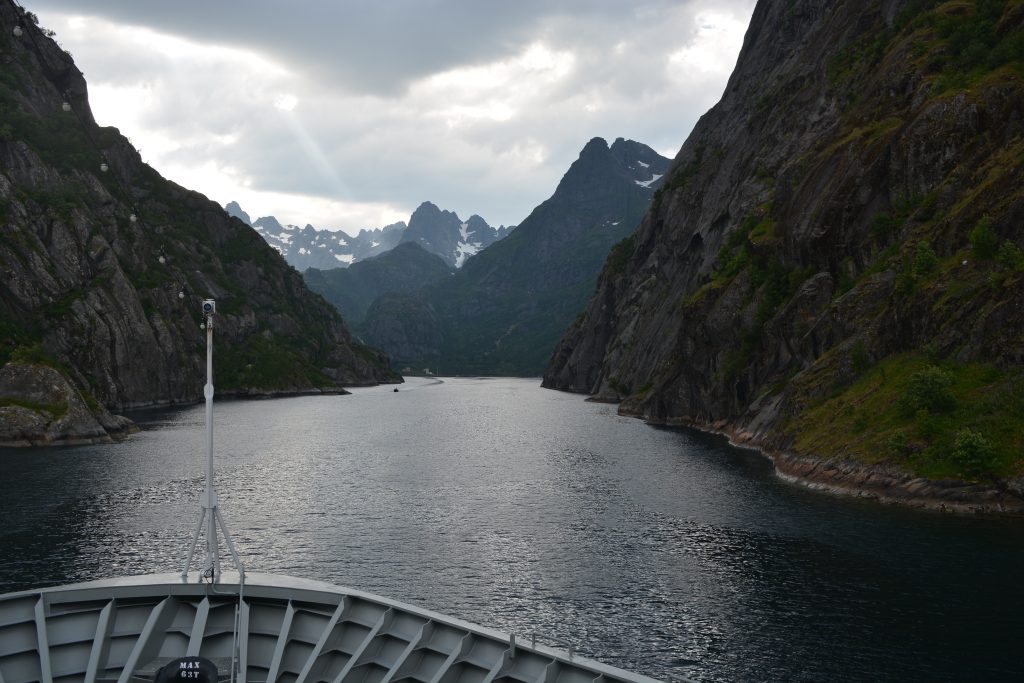 ZurĂŒck an Bord wartet dann gleich das nĂ€chste Highlight des Tages. Wir durchfahren den Raftsund, eine der landschaftlich schönsten Strecken auf der Reise.