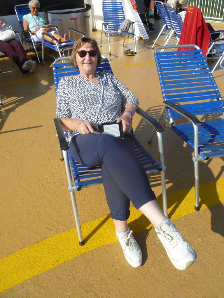 Wir genieĂen strahlenden Sonnenschein bei Temperaturen deutlich ĂŒber der Marke von 20°C auf dem Sonnendeck.